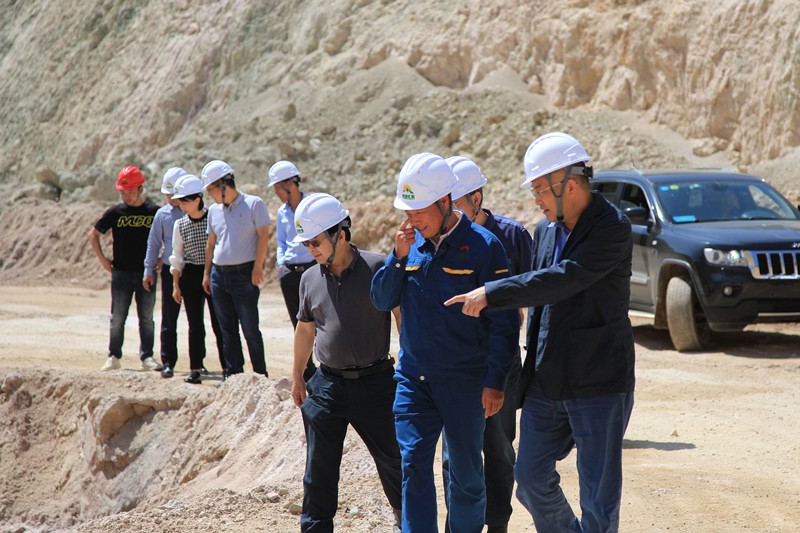 ? ? ? ?陈贵林董事长在大陆槽稀土矿瞭望平台上鸟瞰矿山全景,听取了矿山开采情况、车间加工情况以及矿山外围地质勘查情况,详细了解了矿山开采与绿色矿山建设历程中遇到的难点,并就相关问题提出指导性意见。